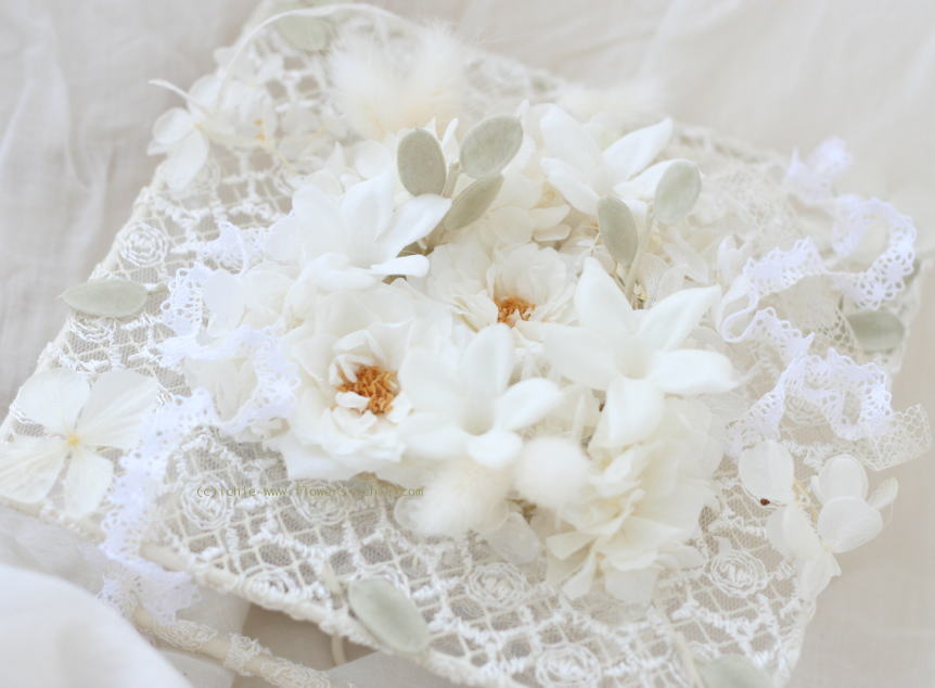 白い白いレースの上に、フィビキアのほかは、白い花ばかりで。