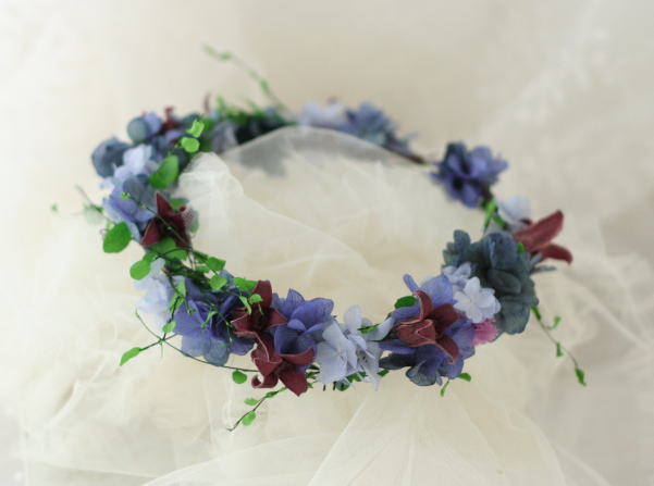 こちらは、プリザーブドで作ったあじさいの青のクラウン。