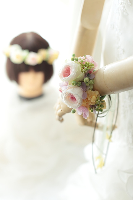 というご要望で作ったプリザーブドフラワーの花嫁様のアクセサリでした。