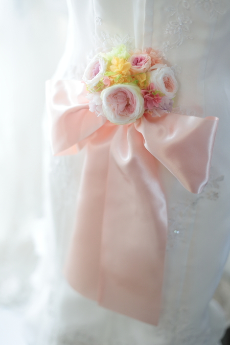 ドレスの後ろ、腰につける花飾りです。