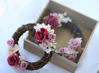 昨日のようなプリザーブドのリース仕立てのものを、