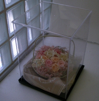 アクリルの箱。写真の24センチ幅のもので1260円、