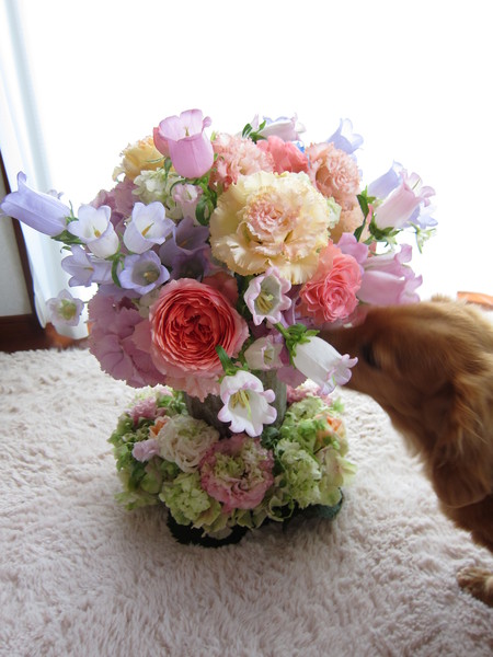 花のにおいにつられてか、おうちのわんこが