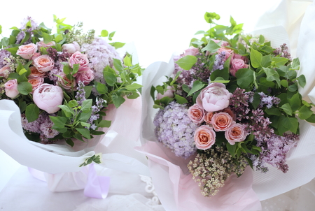 この時期だけ入荷する国産のライラックを2種混ぜてお届けしました。