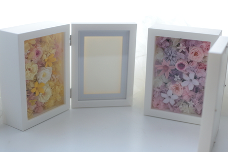 こちらもプリザーブドの花時計と一緒の花束贈呈用。