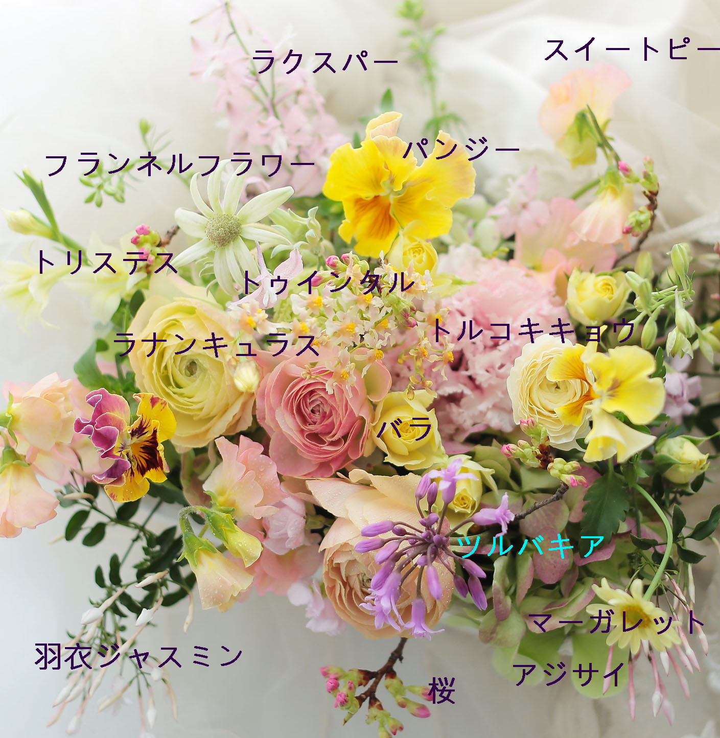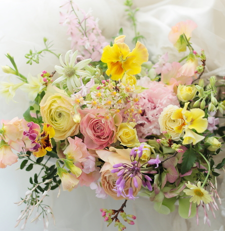 書き忘れました、黄色のフリージアも入ってます。