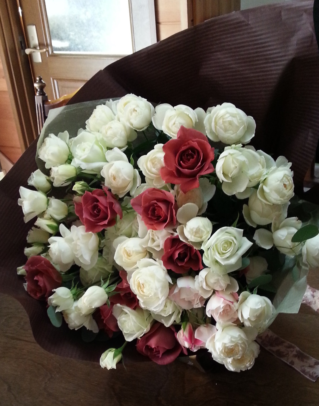 一重のバラ、丸いバラ、いろんな白バラをいれてみました。
