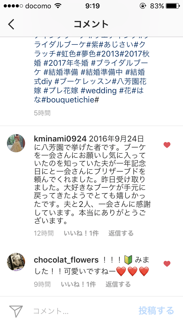 数日後に、元花嫁様、そして今は奥様になられた方から