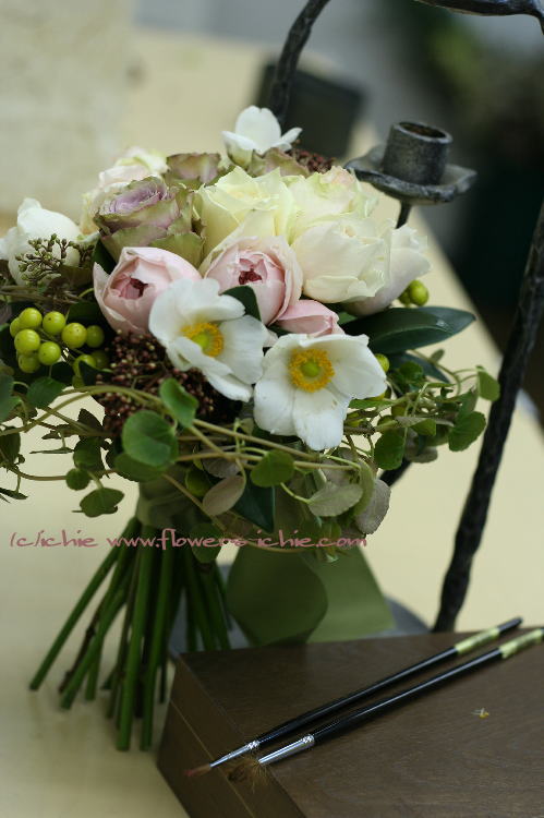 ウェルカムボード代わりとなるアレンジを作ってもらいます。