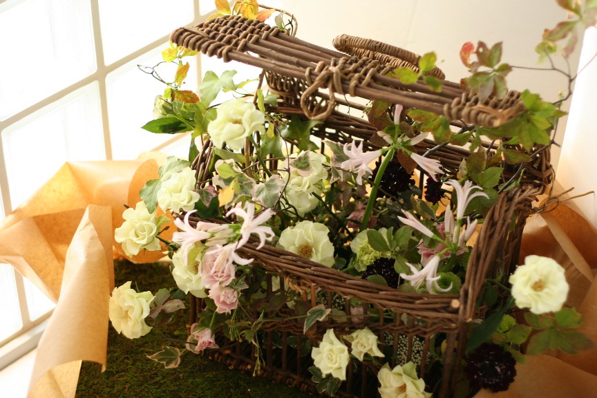竹下景子さんへの楽屋花として製作したアレンジメントです。