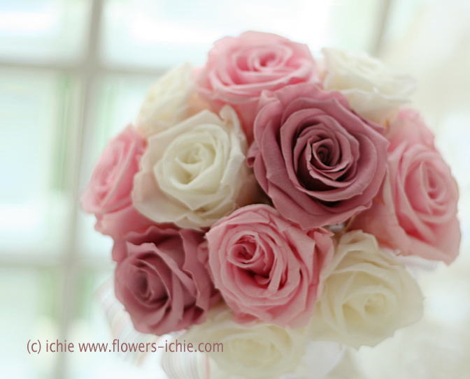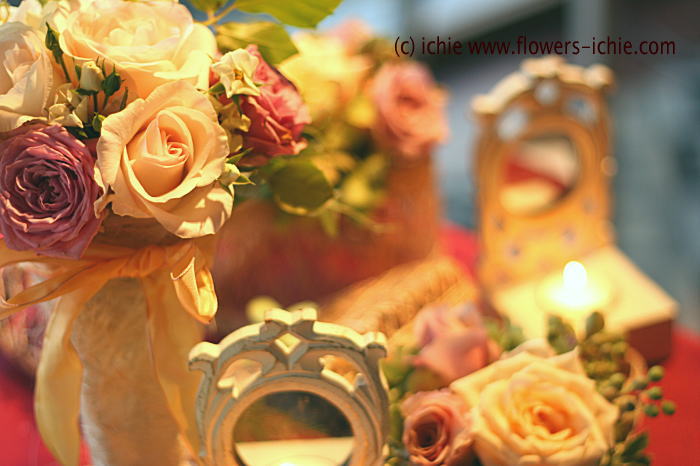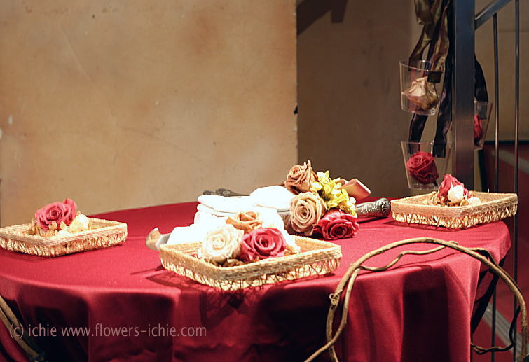 当日は、ケーキ装花もあらかじめプリザーブドで