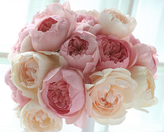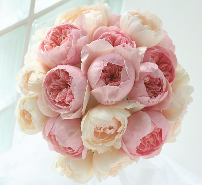 オールドローズのピンクと白の優しいブーケ。