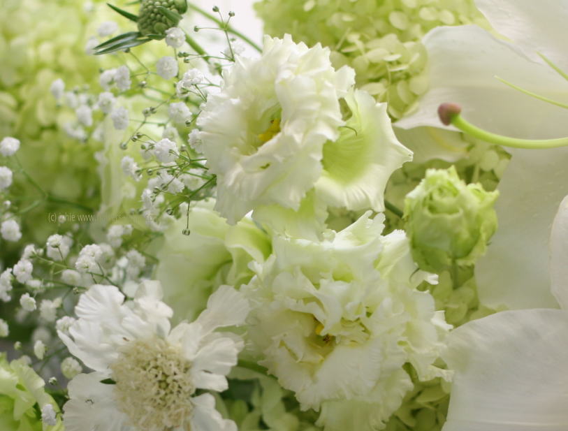 カサブランカ、カスミソウ、トルコキキョウ。