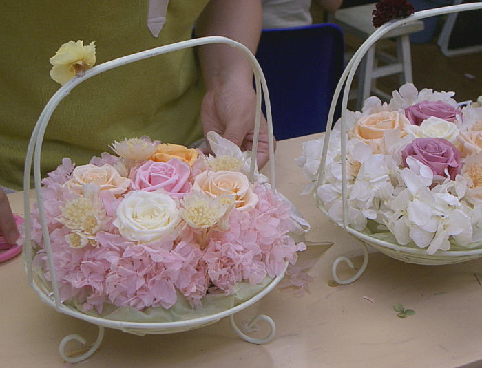 プリザーブドを使ったアレンジメント(カゴ付のお花)として