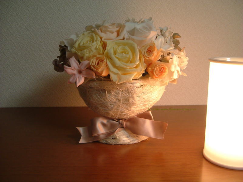 「プリザーブドのローズメリア」のレッスン、生徒さんの作品です。
