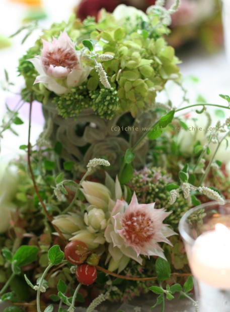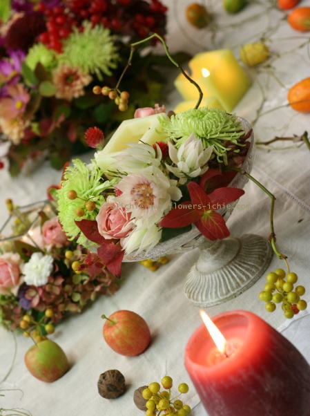 最終的にはアトリエのテーブルを季節の実ものなどでコーディネートし、
