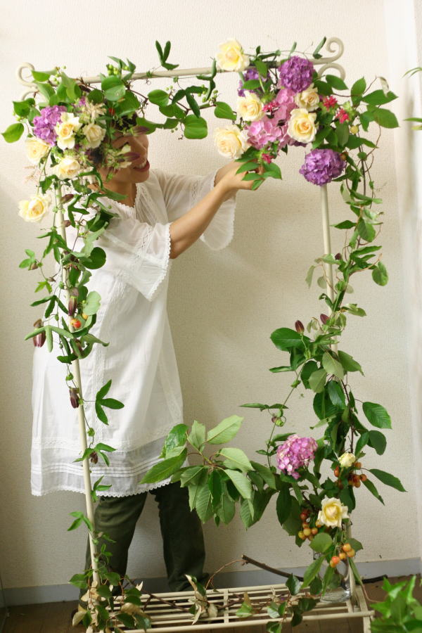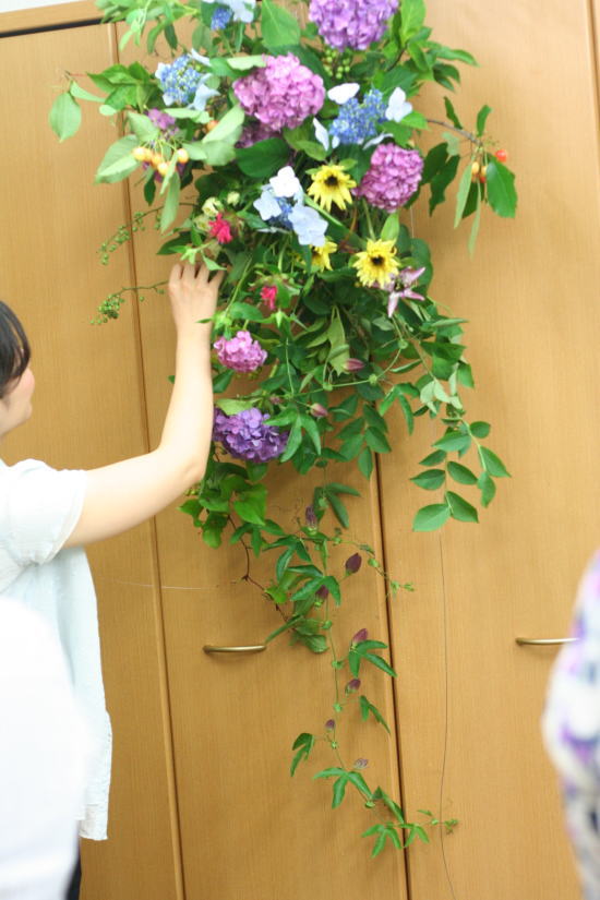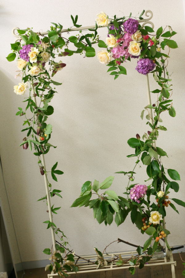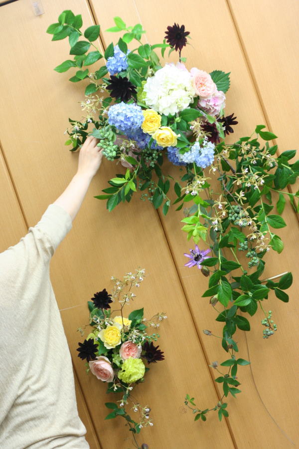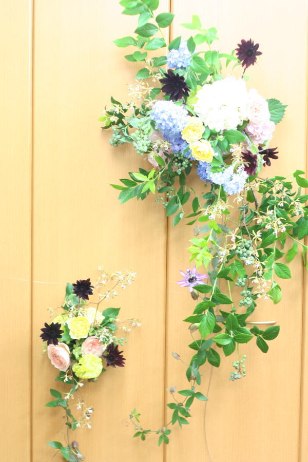 祭壇装花か、あるいは壁面(ドア)の装花か、