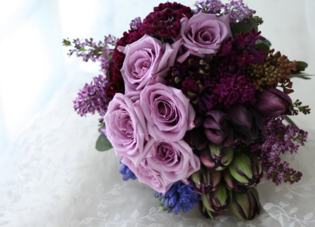 こちらは、こっくりと深い紫のブーケ。
