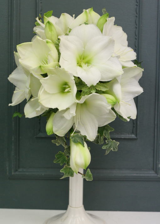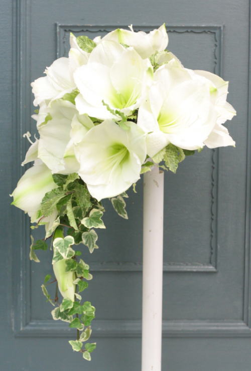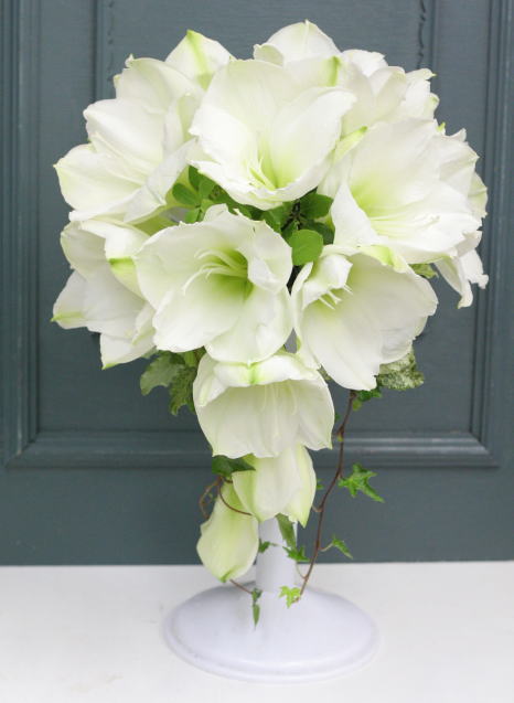 ユーチャリスを数輪加えたランのブーケ、というひときわ