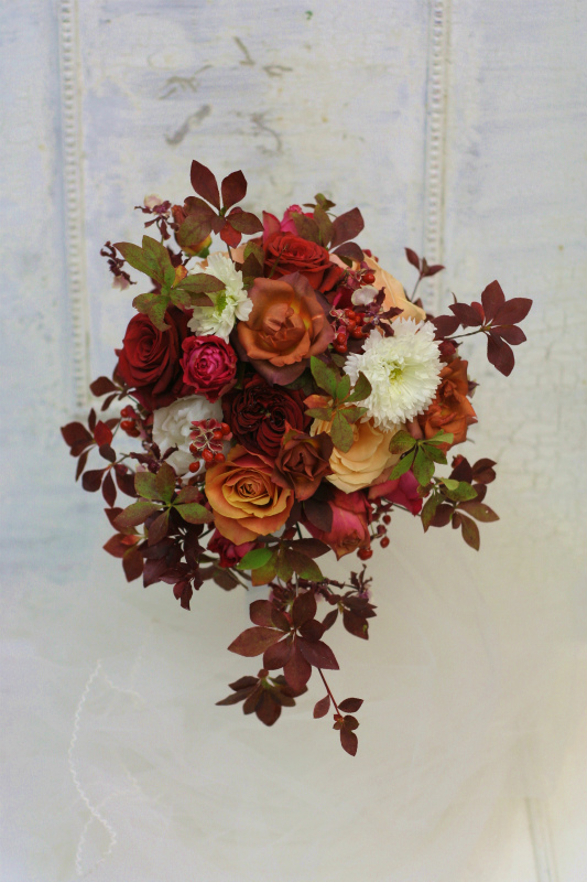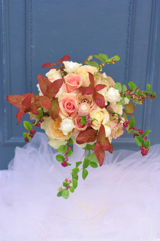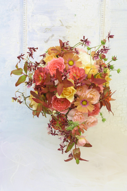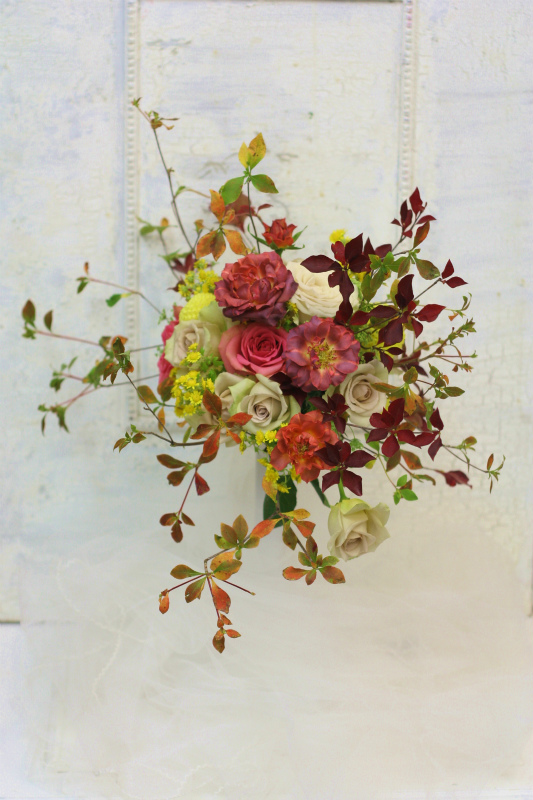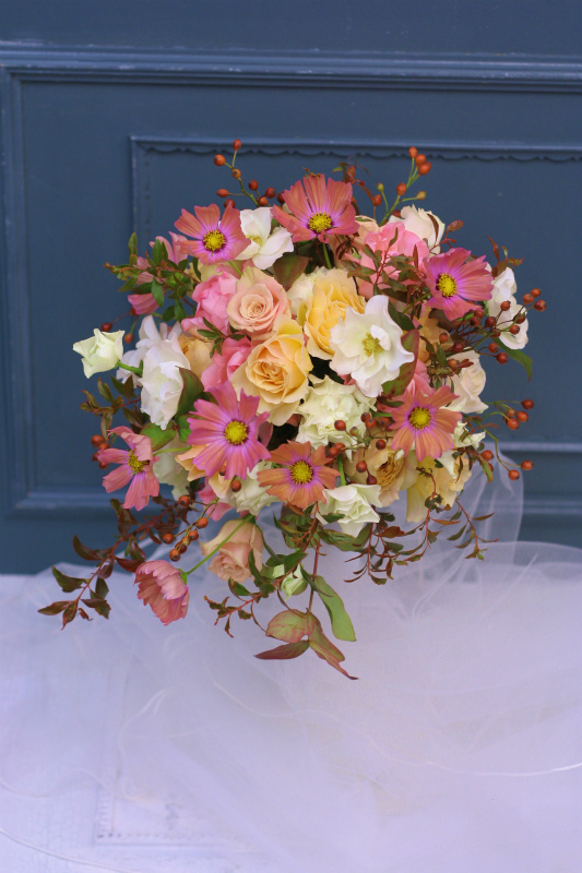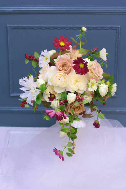 バラのブーケ、秋のブーケ、コスモスいろいろ。