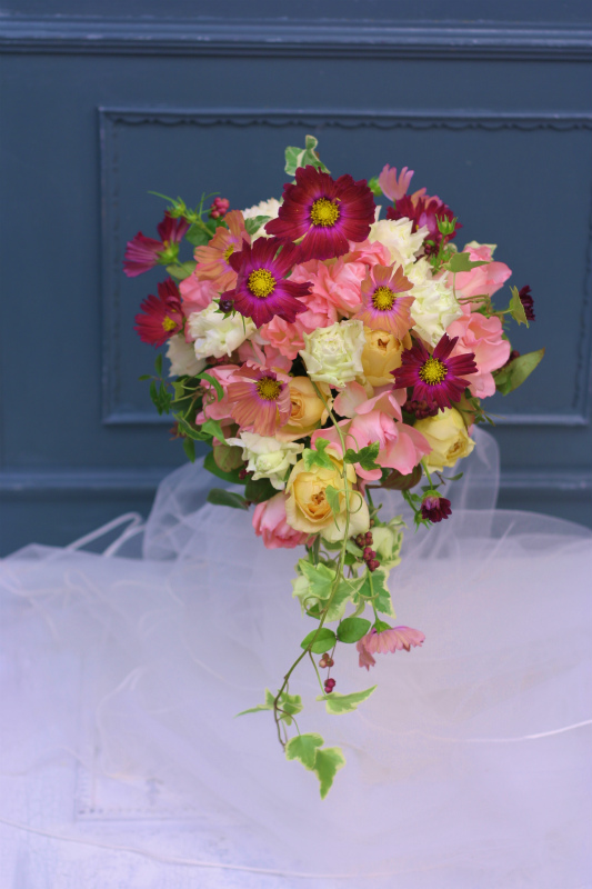 このブーケ、コスモスがわーっとふわーっと入っていて