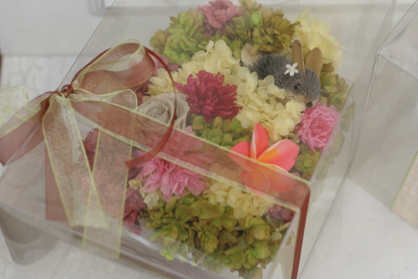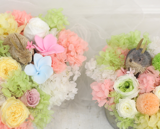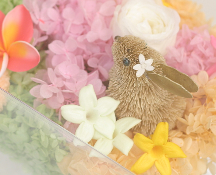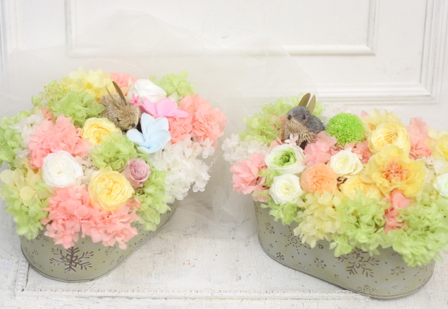 プリザーブドフラワーアレンジメント一緒にうさぎバージョン。