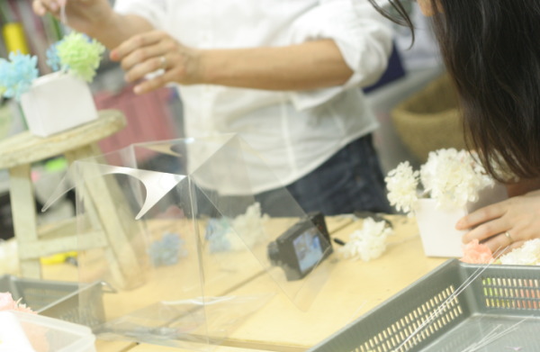 お花を選んでからお二人それぞれ、没頭なさっていました。