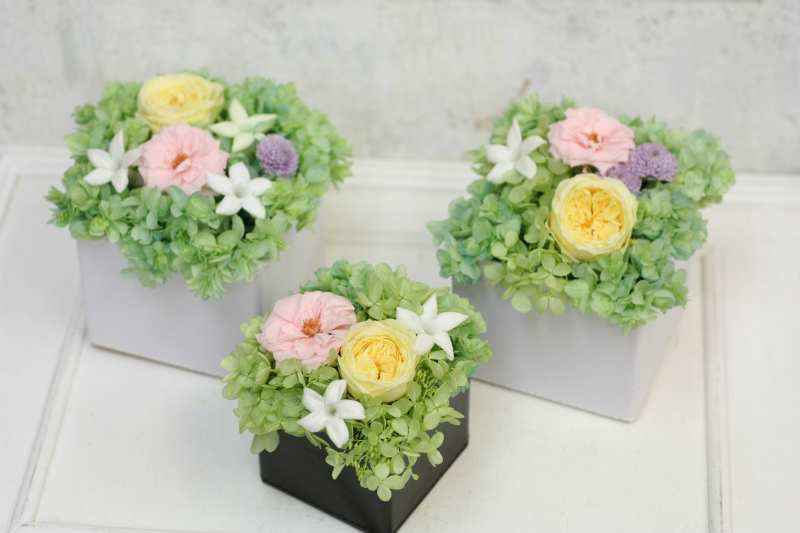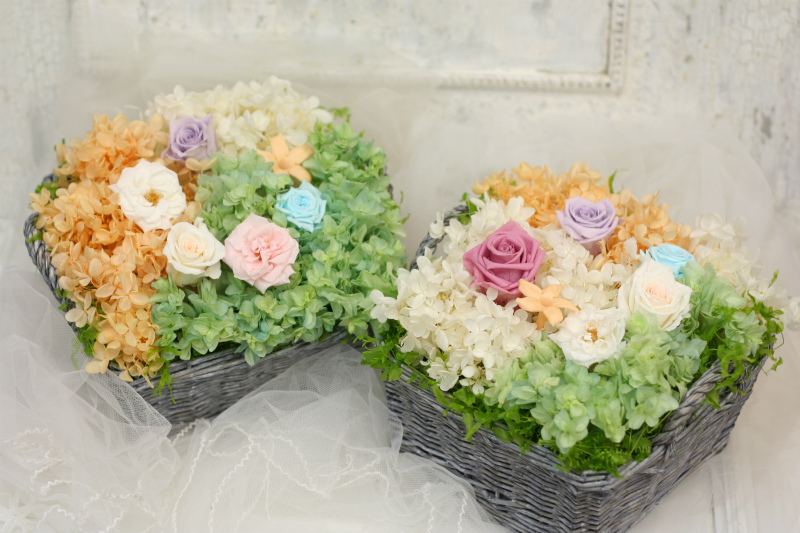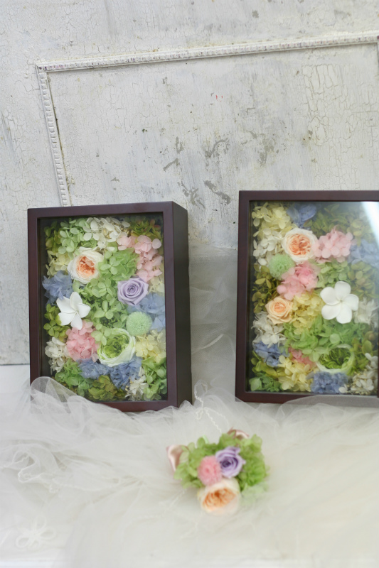 ひとつずつ作られた、こちらもご両親への花。
