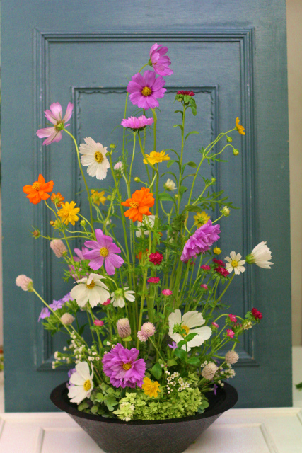 「コスモスは、花を生けるんじゃありません、風を生けるんですよー?」