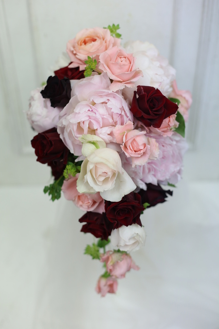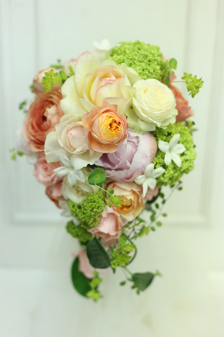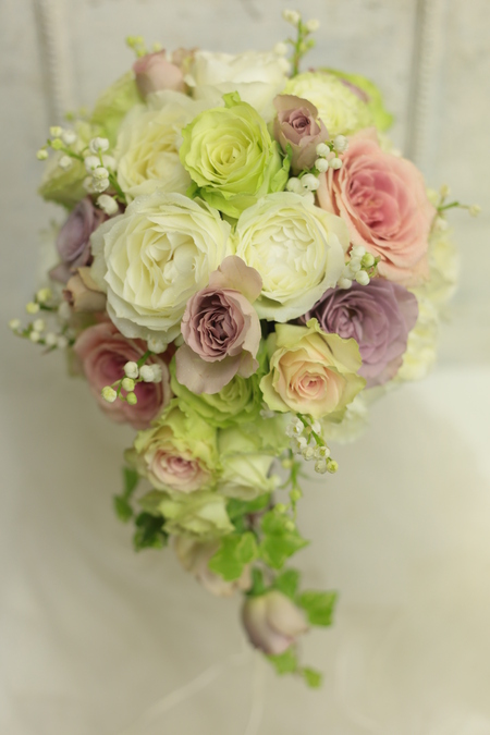 一会の5月の定期レッスンはセミキャスケードブーケを、バラで。
