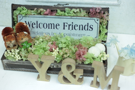 お二人でいらして、ウェルカムボード、リングピロー、リングを製作
