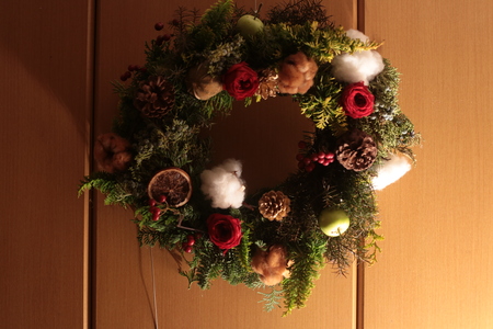 今年の最後の最優秀賞、ポインセチアのクリスマスリース。