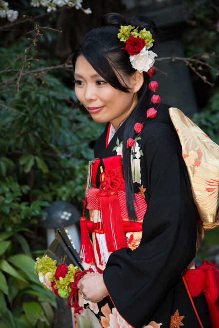 黒引き振り袖に金の帯、小物も全て赤にしていたので、