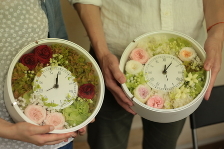 ご両親へ贈る贈呈花としての花時計。