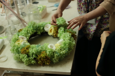 妹様の結婚式のためにありとあらゆる花飾りを作っていった方。