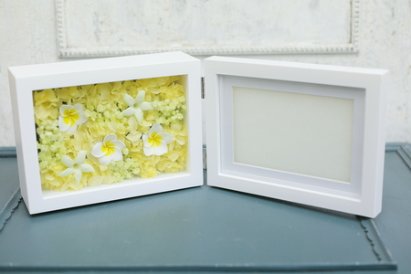 ハワイ挙式なのでプルメリアのさわやかな写真立て。