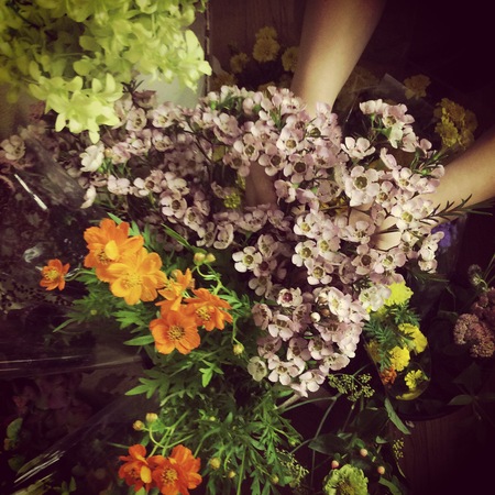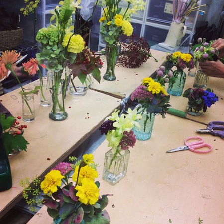 自分で選んだ花をでは小瓶にどう組み合わせるか