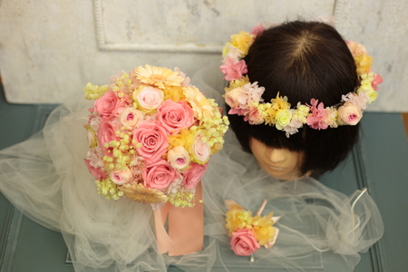 ブーケはお母様、花冠は花嫁さんのハンドメイド。