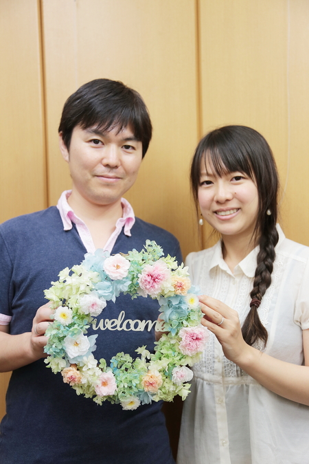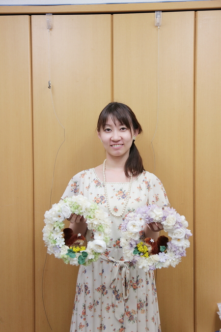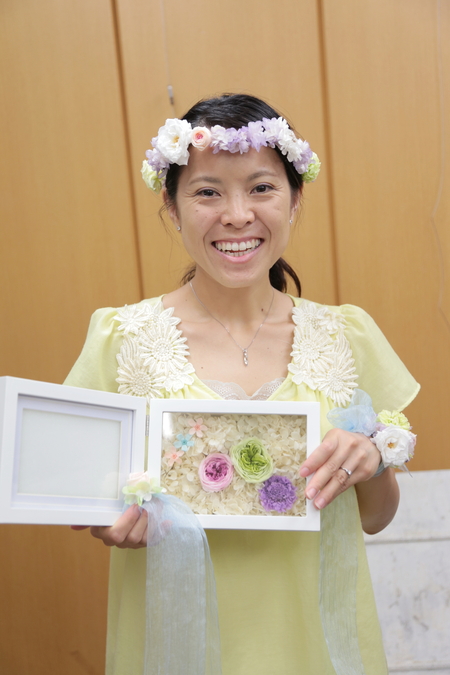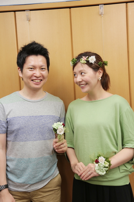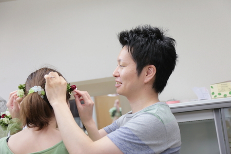 お母様といらして、花かんむりを手作り。