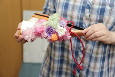 子供の時のお写真と手作りの花。