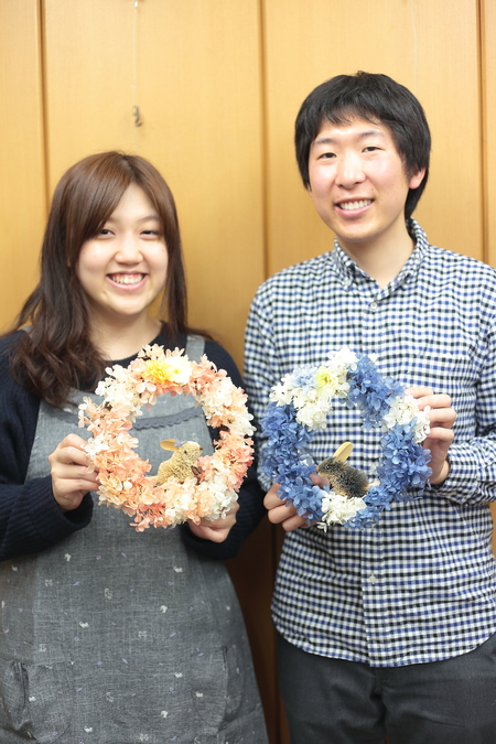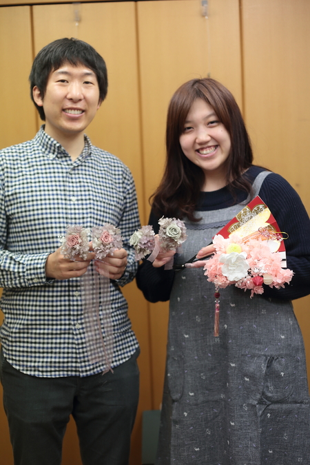 最初のおふたりはまずはご両親へ贈呈用のお花のリース、