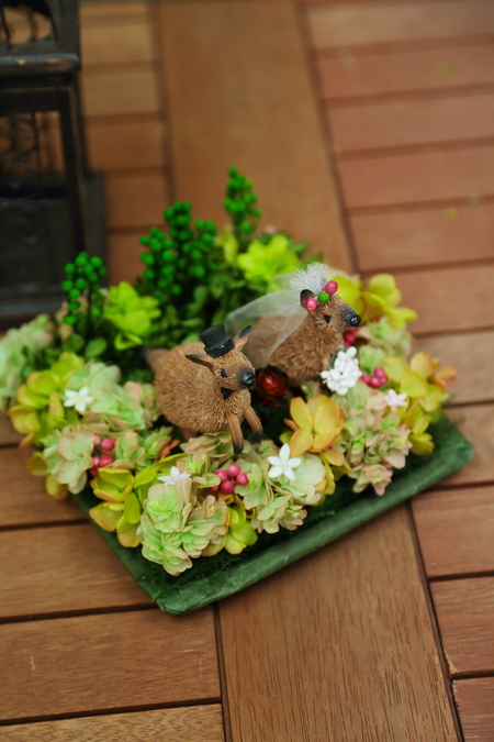 結婚式の花を手作りにきてくださった新郎新婦さま。