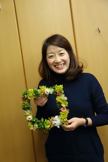 お揃いの、玄関用のリースも仕上げてにっこり。