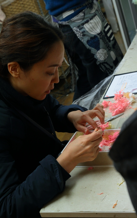 丁寧な作業が印象的な、こちらも花嫁様の手作りです。