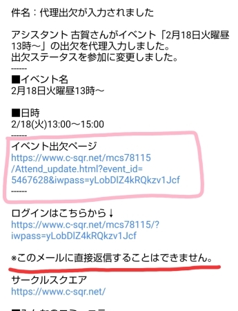 メールのイベント出欠ページにアクセス