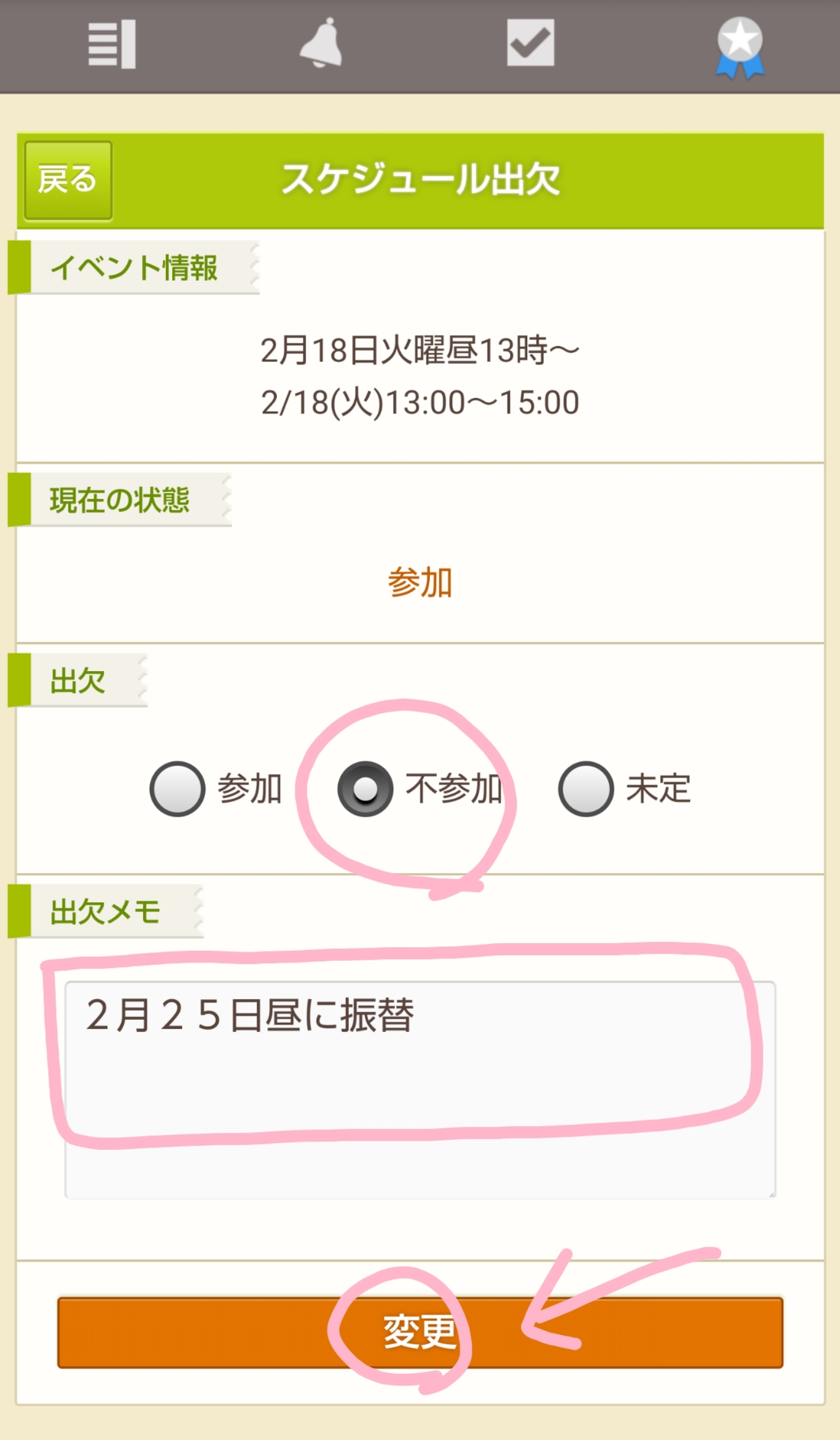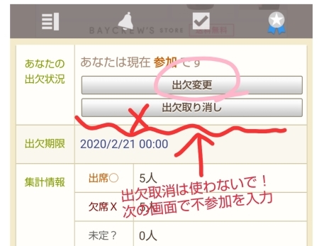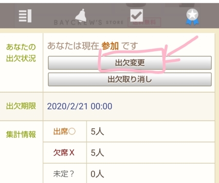 「出欠変更」