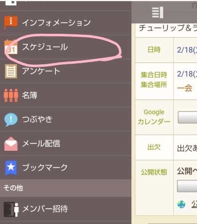 『イベント出欠ページ』から「日程確定」の操作をお願します。