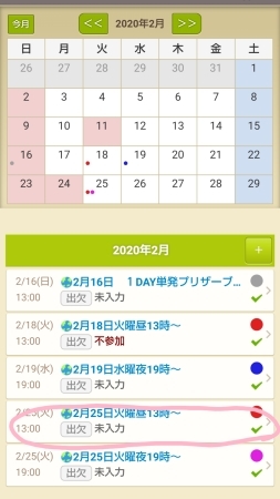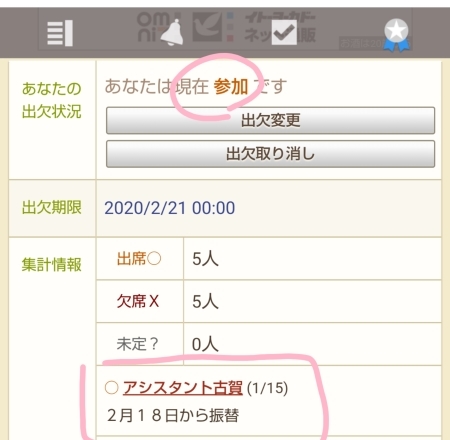 ※「代」のままでも出席となっている場合は出席でカウントしますが 日程確認OK!の意思表示としてこの操作をしていただくことで こちらも確認できるので安心です!