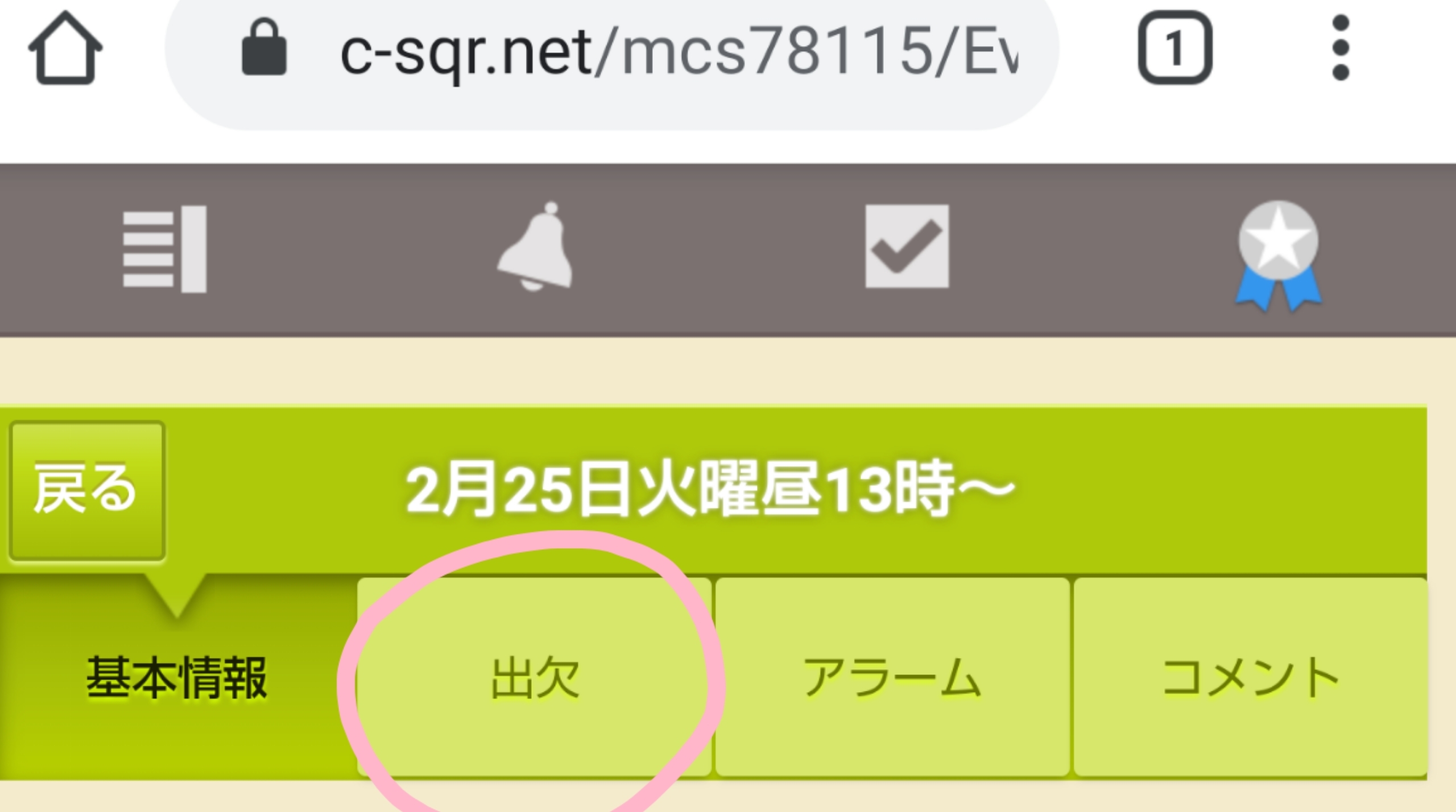 「出欠」のタブから
