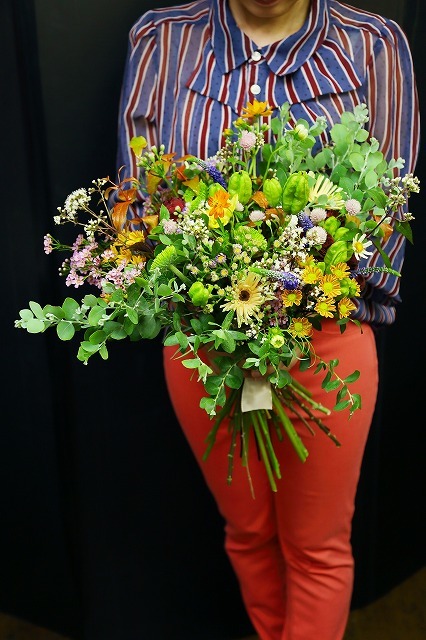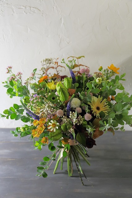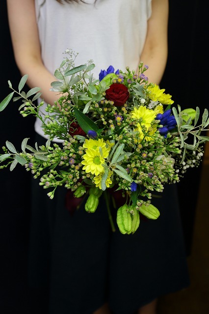 まだ花束を組む手順も覚えている途中の生徒さんなのですが、